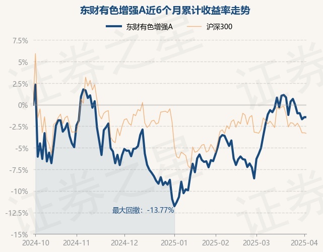 证券之星消息,4月2日,东财有色增强A最新单位净值为1.2761元,累计净值为1.2761元,较前一交易日上涨0.0%。历史数据显示该基金近1个月上涨6.65%,近3个月上涨10.55%,近6个月下跌2.47%,近1年上涨1.62%。该基金近6个月的累计收益率走势如下图: