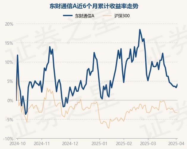 证券之星消息,4月2日,东财通信A最新单位净值为1.2882元,累计净值为1.2882元,较前一交易日上涨0.81%。历史数据显示该基金近1个月下跌2.47%,近3个月上涨0.26%,近6个月上涨4.11%,近1年上涨20.56%。该基金近6个月的累计收益率走势如下图: