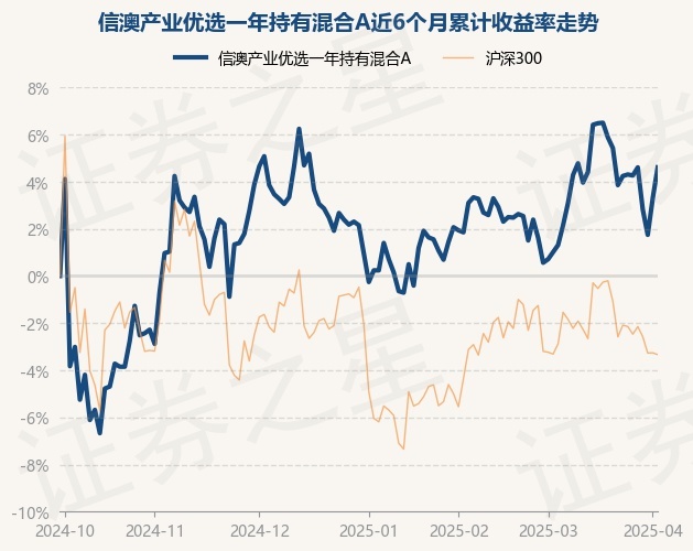 证券之星消息,4月2日,信澳产业优选一年持有混合A最新单位净值为0.4861元,累计净值为0.4861元,较前一交易日上涨1.27%。历史数据显示该基金近1个月上涨4.02%,近3个月上涨4.88%,近6个月上涨4.61%,近1年下跌8.27%。该基金近6个月的累计收益率走势如下图:
