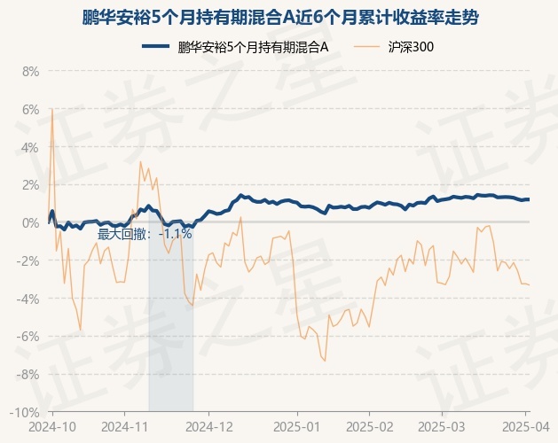 证券之星消息,4月2日,鹏华安裕5个月持有期混合A最新单位净值为1.0656元,累计净值为1.0805元,较前一交易日上涨0.0%。历史数据显示该基金近1个月上涨0.16%,近3个月上涨0.24%,近6个月上涨1.25%,近1年上涨4.6%。该基金近6个月的累计收益率走势如下图: