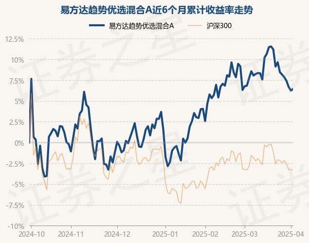 易方达趋势优选混合A为混合型-偏股基金,根据最新一期基金季报显示,该基金资产配置:股票占净值比94.18%,债券占净值比0.08%,现金占净值比5.98%。基金十大重仓股如下: