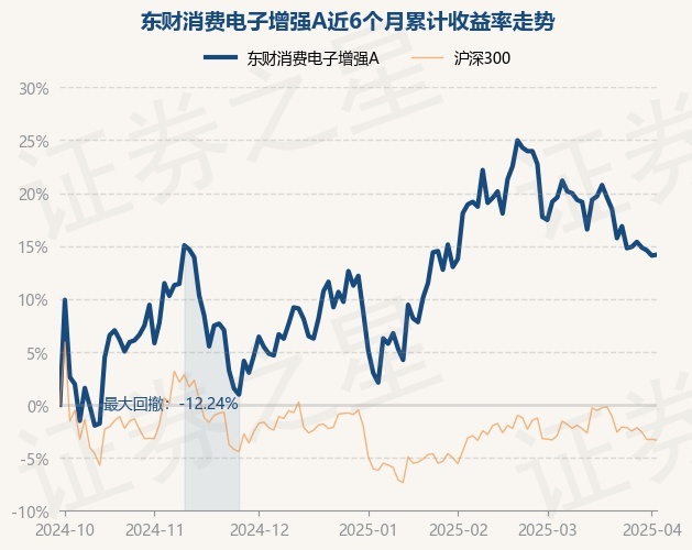证券之星消息,4月2日,东财消费电子增强A最新单位净值为0.8697元,累计净值为0.8697元,较前一交易日上涨0.07%。历史数据显示该基金近1个月下跌3.03%,近3个月上涨8.63%,近6个月上涨14.18%,近1年上涨32.88%。该基金近6个月的累计收益率走势如下图: