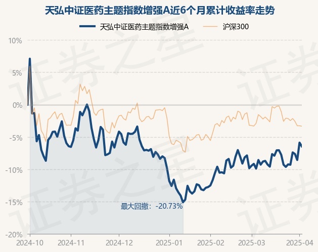证券之星消息,4月2日,天弘中证医药主题指数增强A最新单位净值为0.6755元,累计净值为0.6755元,较前一交易日下跌0.62%。历史数据显示该基金近1个月上涨3.75%,近3个月上涨6.08%,近6个月下跌6.45%,近1年下跌2.13%。该基金近6个月的累计收益率走势如下图: