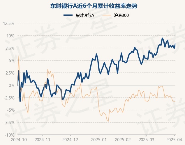 证券之星消息,4月2日,东财银行A最新单位净值为1.2451元,累计净值为1.2451元,较前一交易日上涨0.84%。历史数据显示该基金近1个月上涨2.8%,近3个月上涨5.19%,近6个月上涨8.31%,近1年上涨27.74%。该基金近6个月的累计收益率走势如下图: