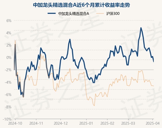 证券之星消息,4月2日,中加龙头精选混合A最新单位净值为0.9512元,累计净值为0.9512元,较前一交易日下跌1.0%。历史数据显示该基金近1个月上涨0.66%,近3个月上涨1.81%,近6个月上涨1.62%,近1年上涨11.89%。该基金近6个月的累计收益率走势如下图: