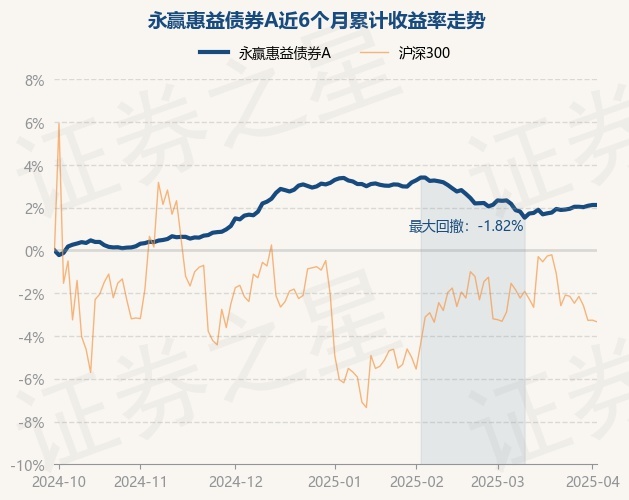 证券之星消息,4月2日,永赢惠益债券A最新单位净值为1.1024元,累计净值为1.2768元,较前一交易日上涨0.0%。历史数据显示该基金近1个月上涨0.19%,近3个月下跌0.94%,近6个月上涨2.33%,近1年上涨5.08%。该基金近6个月的累计收益率走势如下图: