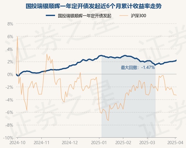 证券之星消息,4月2日,国投瑞银顺晖一年定开债发起最新单位净值为1.0633元,累计净值为1.0976元,较前一交易日上涨0.11%。历史数据显示该基金近1个月上涨0.2%,近3个月下跌0.64%,近6个月上涨2.19%,近1年上涨4.22%。该基金近6个月的累计收益率走势如下图: