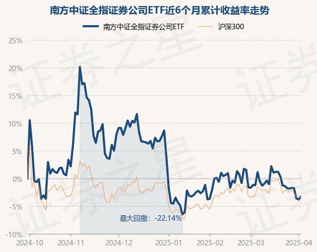 证券之星消息,4月2日,南方中证全指证券公司ETF最新单位净值为1.077元,累计净值为1.077元,较前一交易日上涨0.53%。历史数据显示该基金近1个月下跌1.68%,近3个月下跌1.58%,近6个月下跌3.27%,近1年上涨25.52%。该基金近6个月的累计收益率走势如下图:
