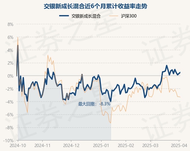 证券之星消息,4月2日,交银新成长混合最新单位净值为3.261元,累计净值为3.661元,较前一交易日上涨0.15%。历史数据显示该基金近1个月上涨2.71%,近3个月上涨2.81%,近6个月上涨0.49%,近1年下跌1.12%。该基金近6个月的累计收益率走势如下图: