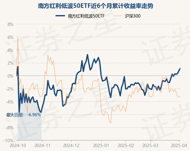 证券之星消息,4月2日,南方红利低波50ETF最新单位净值为1.4221元,累计净值为1.7771元,较前一交易日上涨0.32%。历史数据显示该基金近1个月上涨3.1%,近3个月上涨1.1%,近6个月上涨1.1%,近1年上涨15.75%。该基金近6个月的累计收益率走势如下图: