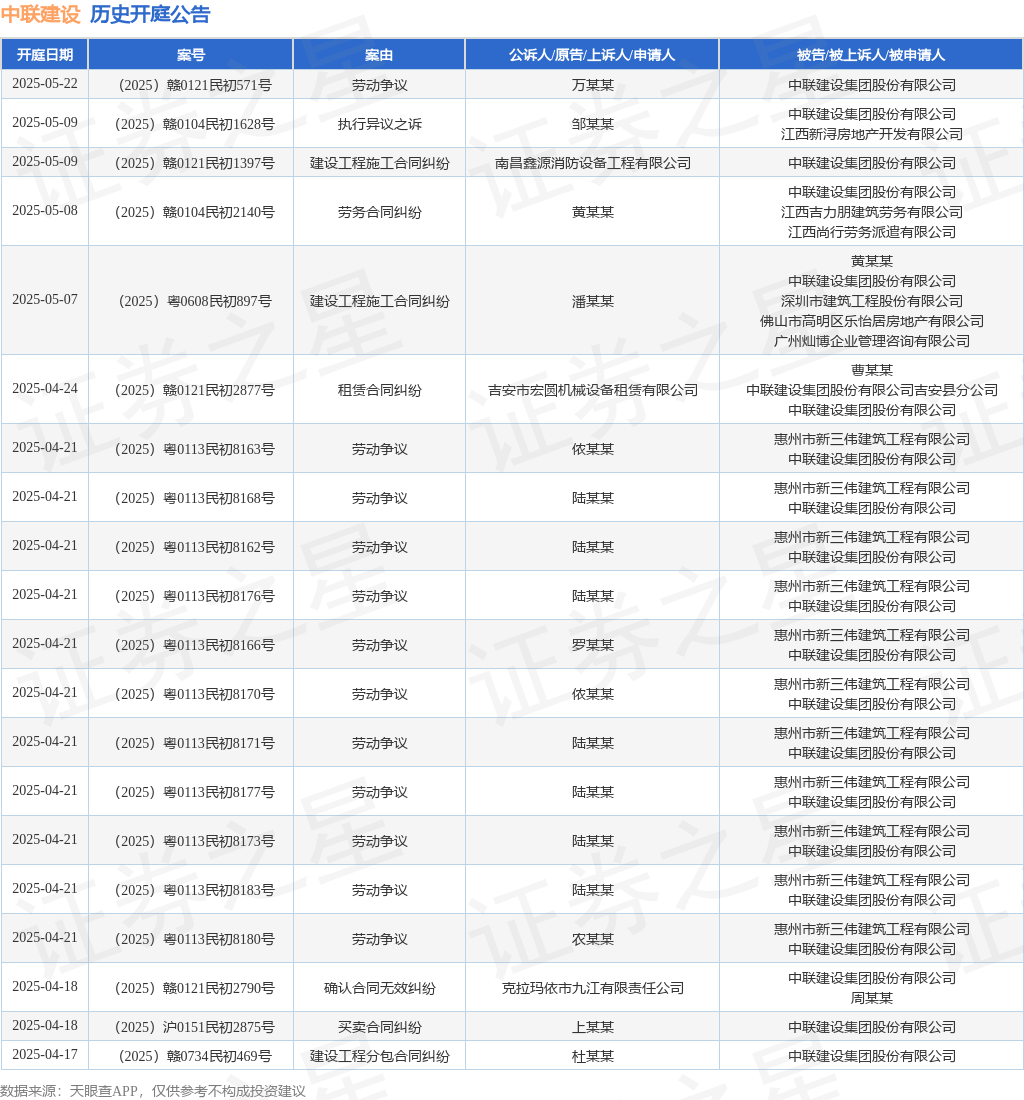 证券之星消息,根据天眼查APP显示,近日公布了一则中联建设集团股份有限公司作为被告/被上诉人的开庭公告,详细内容如下: