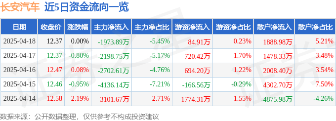 证券之星消息,截至2025年4月18日收盘,长安汽车(000625)报收于12.37元,上涨0.0%,换手率0.36%,成交量29.42万手,成交额3.62亿元。