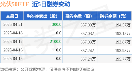 证券之星消息,4月21日,光伏50ETF(516880)融资买入9.71万元,融资偿还53.79万元,融资净卖出44.08万元,融资余额2879.23万元,近20个交易日中有11个交易日出现融资净买入。