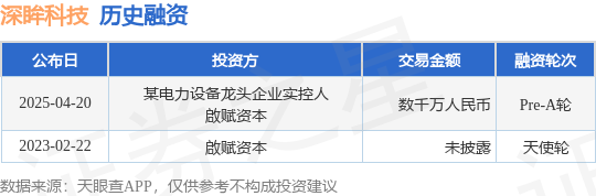 证券之星消息,根据天眼查APP于4月20日公布的信息整理,深圳深眸数智科技有限公司Pre-A轮融资,融资额数千万人民币,参与投资的机构包括某电力设备龙头企业实控人,啟赋资本。