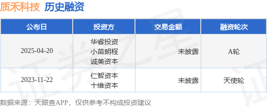 证券之星消息,根据天眼查APP于4月20日公布的信息整理,杭州质禾科技有限公司A轮融资,融资额未披露,参与投资的机构包括华睿投资,小苗朗程,诚美资本。