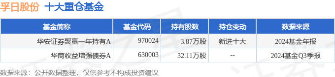 持有孚日股份最多的基金为华安证券聚赢一年持有A,目前规模为0.49亿元,最新净值1.2371(4月22日),较上一交易日上涨0.02%,近一年上涨3.0%。该基金现任基金经理为樊艳 刘杰。