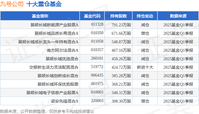 持有九号公司最多的基金为景顺长城新能源产业股票A,目前规模为27.55亿元,最新净值1.1182(4月30日),较上一交易日上涨0.52%,近一年上涨19.13%。该基金现任基金经理为杨锐文 曾英捷。
