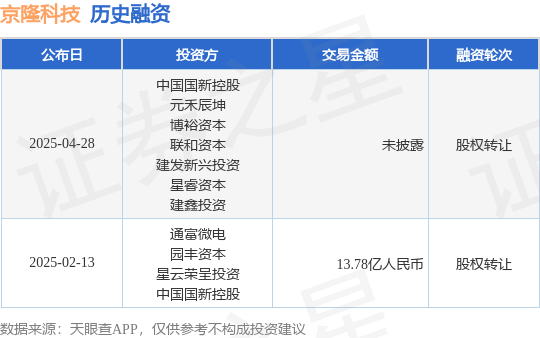 证券之星消息,根据天眼查APP于4月28日公布的信息整理,京隆科技(苏州)有限公司股权转让融资,交易额未披露。