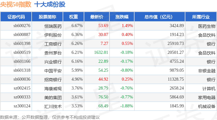 证券之星消息,5月15日,央视50(399550)指数报收于7525.08点,跌0.46%,成交395.24亿元,换手率0.23%。当日该指数成份股中,上涨的有14家,中国神华以1.99%的涨幅领涨,下跌的有36家,广联达以4.55%的跌幅领跌。