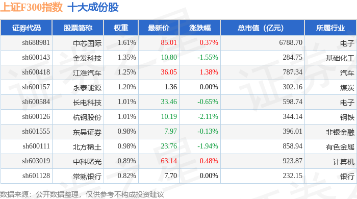 证券之星消息,5月19日,上证F300(000099)指数报收于7703.67点,涨0.36%,成交708.67亿元,换手率1.0%。当日该指数成份股中,上涨的有192家,日照港以8.18%的涨幅领涨,下跌的有97家,上海机电以5.3%的跌幅领跌。