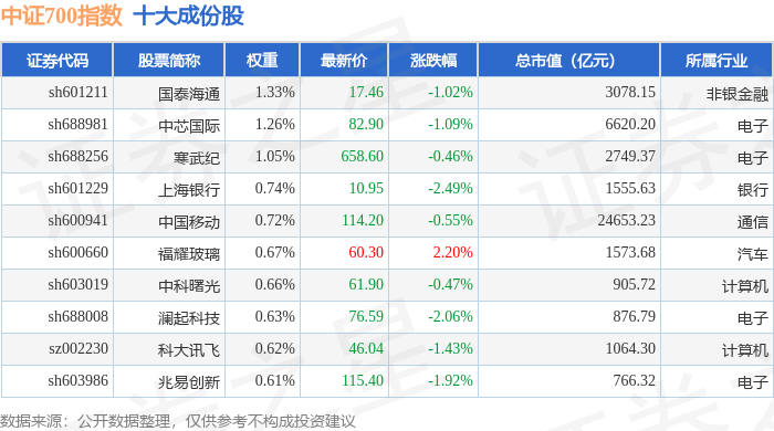 资金流向方面,中证700(000907)指数成份股当日主力资金净流出合计109.31亿元,游资资金净流入合计7.72亿元,散户资金净流入合计101.59亿元。成份股资金流向详情见下表:
