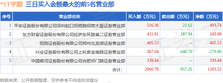 证券之星消息,沪深交易所2025年5月28日公布的交易公开信息显示,*ST宇顺(002289)因连续三个交易日内,涨幅偏离值累计达到12%的ST证券、*ST证券和未完成股改证券登上龙虎榜。此次是近5个交易日内第1次上榜。