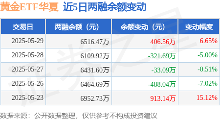 证券之星消息,5月29日,黄金ETF华夏(518850)融资买入4240.61万元,融资偿还3834.05万元,融资净买入406.56万元,融资余额6516.47万元。