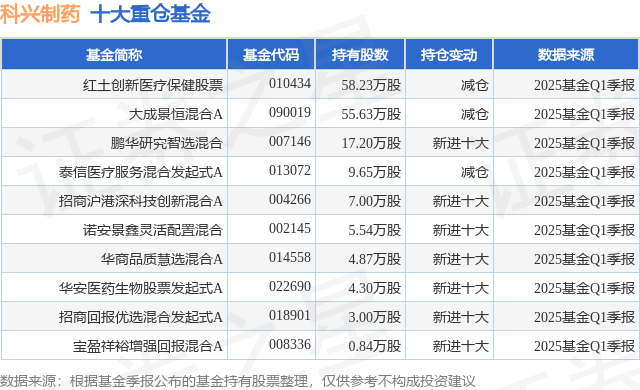 重仓科兴制药的前十大公募基金请见下表:
