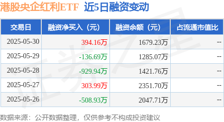 证券之星消息,5月30日,港股央企红利ETF(513910)融资买入578.68万元,融资偿还184.51万元,融资净买入394.16万元,融资余额1679.23万元。
