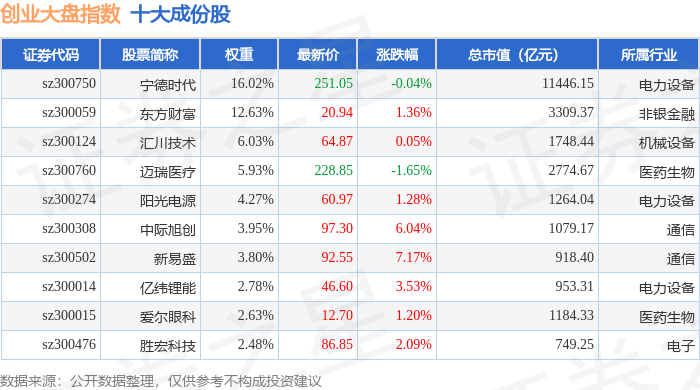 创业大盘(399293)指数十大成份股详情如下: