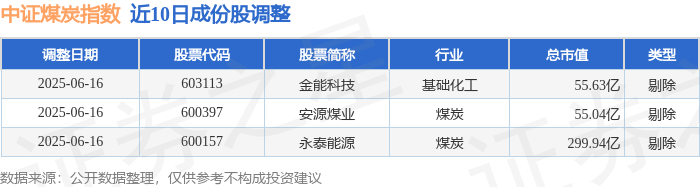 近10日内中证煤炭(399998)指数成份股做了调整,剔除了3只股票。