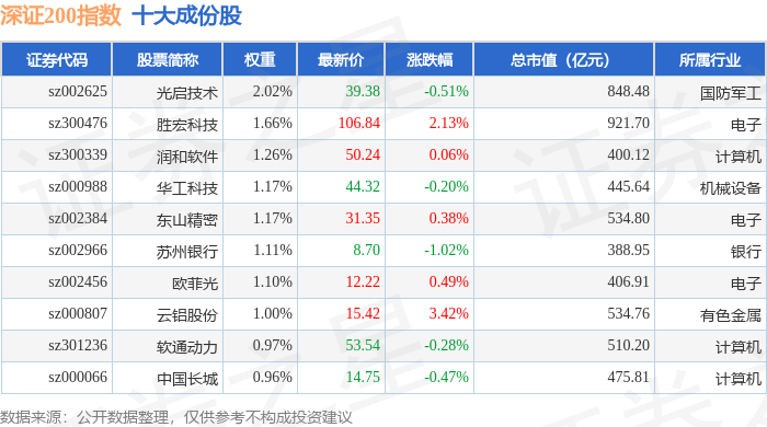 证券之星消息,6月11日,深证200(399009)指数报收于3816.35点,涨0.68%,成交796.06亿元,换手率1.22%。当日该指数成份股中,上涨的有136家,金力永磁以7.89%的涨幅领涨,下跌的有54家,深桑达A以3.9%的跌幅领跌。