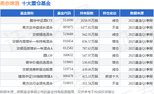 根据2025基金Q1季报公募基金重仓股数据,重仓该股的公募基金共55家,其中持有数量最多的公募基金为鹏华基金的鹏华中证酒ETF。鹏华中证酒ETF目前规模为122.1亿元,最新净值0.5604(6月12日),较上一交易日下跌1.58%,近一年下跌12.46%。该公募基金现任基金经理为张羽翔。张羽翔在任的基金产品包括:鹏华香港银行指数(LOF)A,管理时间为2019年11月22日至今,期间收益率为56.31%;鹏华酒A,管理时间为2021年1月20日至今,期间收益率为-38.22%;鹏华中证港股通医药卫生综合交易ETF,管理时间为2021年7月13日至今,期间收益率为-39.88%。