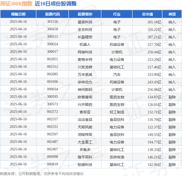 近10日内深证300R(399344)指数成份股做了调整,新纳入了10只股票,剔除了10只股票。