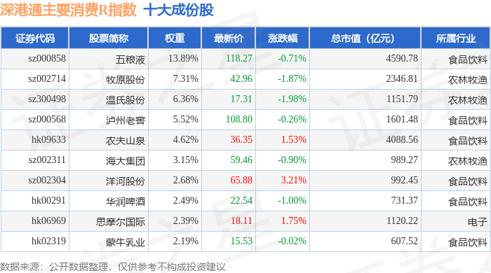 深港通主要消费R(483021)指数十大成份股详情如下:
