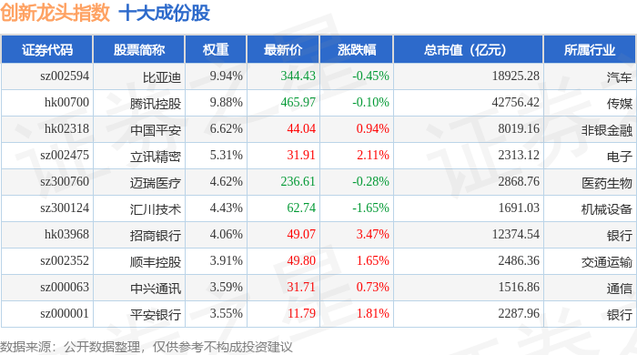 证券之星消息,6月16日,创新龙头(980036)指数报收于2766.45点,涨0.67%,成交564.72亿元。当日该指数成份股中,上涨的有69家,新国都以8.08%的涨幅领涨,下跌的有28家,新产业以3.8%的跌幅领跌。