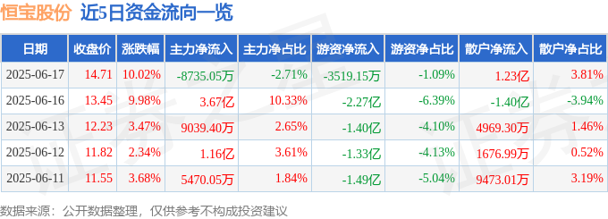 6月17日的资金流向数据方面,主力资金净流出8735.05万元,占总成交额2.71%,游资资金净流出3519.15万元,占总成交额1.09%,散户资金净流入1.23亿元,占总成交额3.81%。