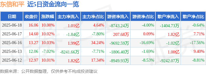 6月18日的资金流向数据方面,主力资金净流入1.01亿元,占总成交额4.64%,游资资金净流出8743.24万元,占总成交额4.0%,散户资金净流出1404.73万元,占总成交额0.64%。