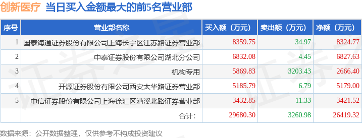 证券之星消息,沪深交易所2025年6月19日公布的交易公开信息显示,创新医疗(002173)因日涨幅偏离值达到7%的前5只证券登上龙虎榜。此次是近5个交易日内第1次上榜。