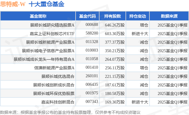 根据2025基金Q1季报公募基金重仓股数据,重仓该股的公募基金共99家,其中持有数量最多的公募基金为景顺长城基金的景顺长城研究精选股票A。景顺长城研究精选股票A目前规模为31.77亿元,最新净值1.563(6月23日),较上一交易日上涨0.64%,近一年上涨19.68%。该公募基金现任基金经理为张雪薇。张雪薇在任的基金产品包括:景顺长城电子信息产业股票A,管理时间为2022年5月25日至今,期间收益率为25.88%;
