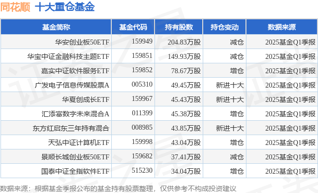 根据2025基金Q1季报公募基金重仓股数据,重仓该股的公募基金共128家,其中持有数量最多的公募基金为华安基金的华安创业板50ETF。华安创业板50ETF目前规模为256.51亿元,最新净值0.9196(6月24日),较上一交易日上涨2.44%,近一年上涨23.35%。该公募基金现任基金经理为许之彦。许之彦在任的基金产品包括:华安上证180ETF,管理时间为2009年9月5日至今,期间收益率为66.14%;华安上证180ETF联接A,管理时间为2009年9月29日至今,期间收益率为62.77%;华安黄金易ETF,管理时间为2013年7月18日至今,期间收益率为181.65%;华安黄金易ETF联接A,管理时间为2013年8月22日至今,期间收益率为171.41%。
