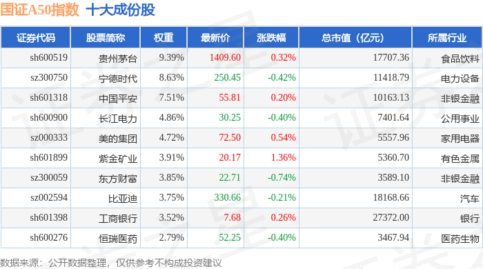 资金流向方面,国证A50(399310)指数成份股当日主力资金净流出合计11.86亿元,游资资金净流入合计2.75亿元,散户资金净流入合计9.1亿元。成份股资金流向详情见下表: