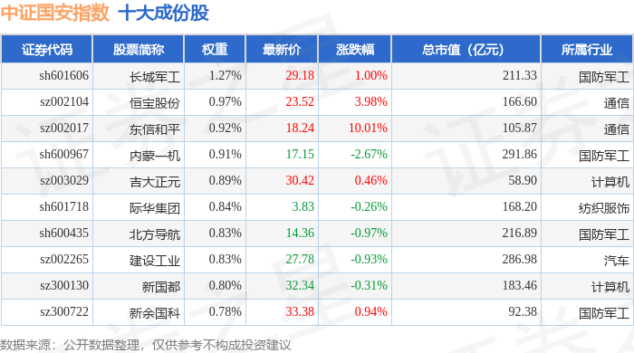 中证国安(399813)指数十大成份股详情如下: