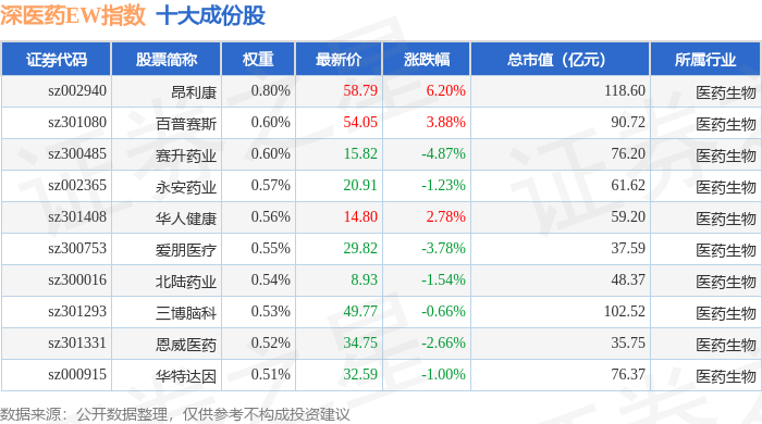 证券之星消息,7月23日,深医药EW(399676)指数报收于3728.34点,跌0.03%,成交786.35亿元,换手率3.58%。当日该指数成份股中,上涨的有75家,振东制药以19.96%的涨幅领涨,下跌的有143家,诚达药业以13.12%的跌幅领跌。