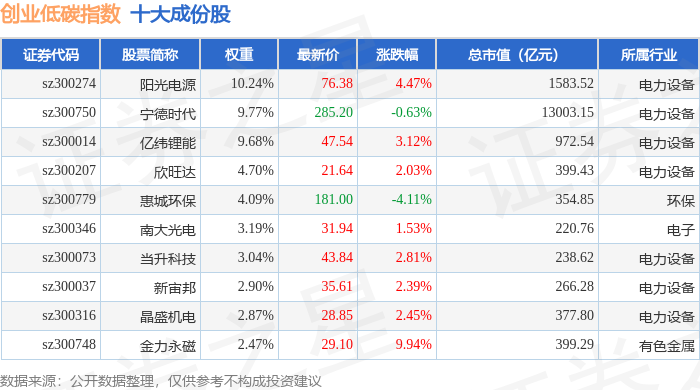 证券之星消息,7月24日,创业低碳(399259)指数报收于3548.34点,涨1.88%,成交334.25亿元,换手率2.89%。当日该指数成份股中,上涨的有44家,金力永磁以9.94%的涨幅领涨,下跌的有6家,惠城环保以4.11%的跌幅领跌。
