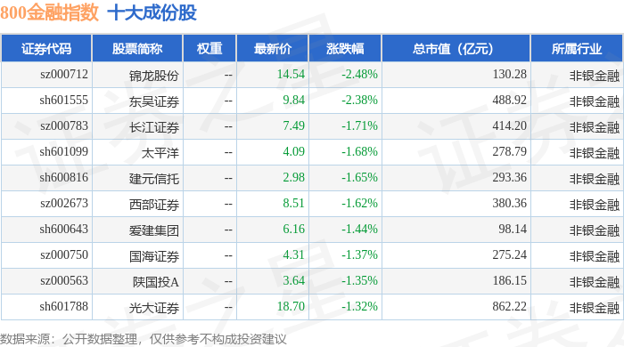 证券之星消息,7月30日,800金融(000974)指数报收于7116.62点,涨0.18%,成交1020.06亿元,换手率0.72%。当日该指数成份股中,上涨的有19家,新华保险以3.57%的涨幅领涨,下跌的有25家,锦龙股份以2.48%的跌幅领跌。