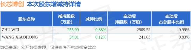 证券之星消息,7月30日长芯博创发布公告《长芯博创:长芯博创科技股份有限公司关于持股5%以上股东减持股份触及1%整数倍的公告》,其股东ZHU WEI、WANG XIAOHONG于2025年7月29日至2025年7月30日间合计减持290.0万股,占公司目前总股本的0.9962%,变动期间该股股价上涨8.22%,截止7月30日收盘报91.01元。