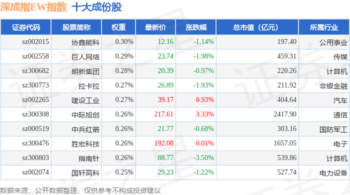 深成指EW(399659)指数十大成份股详情如下: