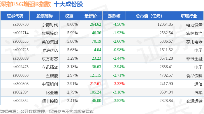深指ESG增强R(470032)指数十大成份股详情如下: