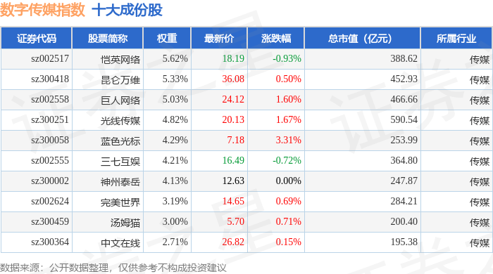 数字传媒(399434)指数十大成份股详情如下: